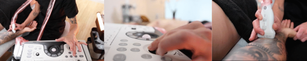 La ecografía musculoesquelética nos permite visualizar en tiempo real los tejidos blandos, los músculos, tendones, ligamentos y articulaciones del cuerpo. Con la ayuda de la ecografía musculoesquelética, podemos obtener imágenes detalladas y precisas para diagnosticar y evaluar lesiones musculoesqueléticas, monitorear el progreso de la rehabilitación y guiar de manera precisa los tratamientos terapéuticos.
